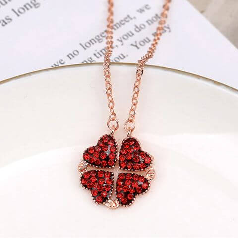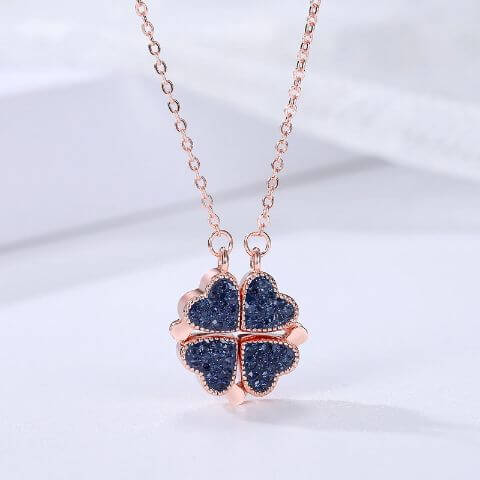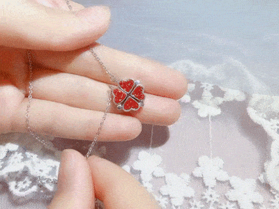 Кольє легко трансформується з конюшини у набірсердечок, причому обидві сторони мають різні кольори; одна сторона блакитна, а інша червона!