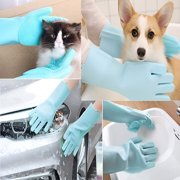 Використовуйте обидві руки, щоб заощадити час і досягти важкодоступних місць, таких як обличчя, лапи та хвіст. Виготовлені з термостійкого силікону, ці рукавички м’які, гнучкі та ідеально підходять для ретельного догляду.