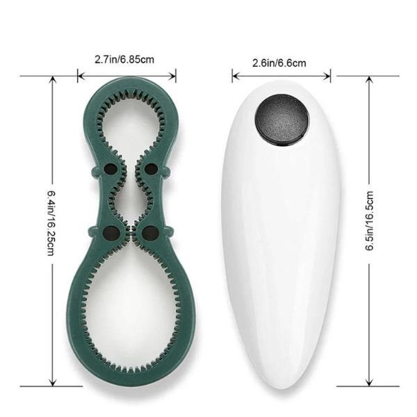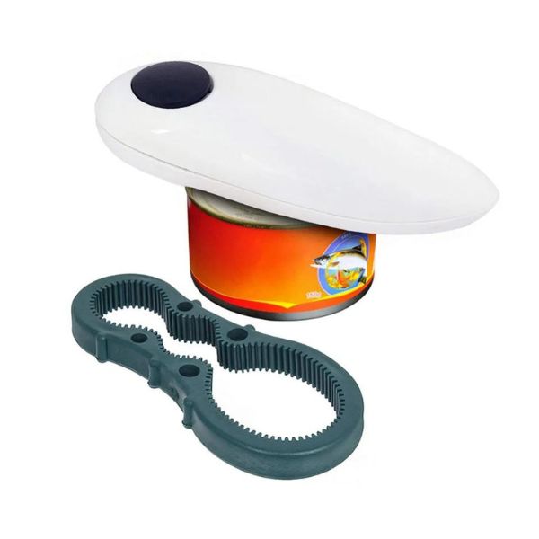 Відкриває будь-яку банку одним натисканням кнопки! 🥫 Ідеально підходить для банок будь-якого розміру, цей електричний відкривач забезпечує гладкі та безпечні краї. Цей компактний та портативний набір включає автоматичний відкривач для банок та ручний відкривач для пляшок. Безпечний і ідеальний для пікніків та кухонь.
