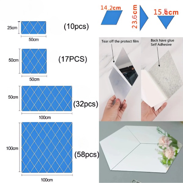 Матеріал: Акрилове дзеркало з захисною плівкою (потрібно зняти перед використанням).