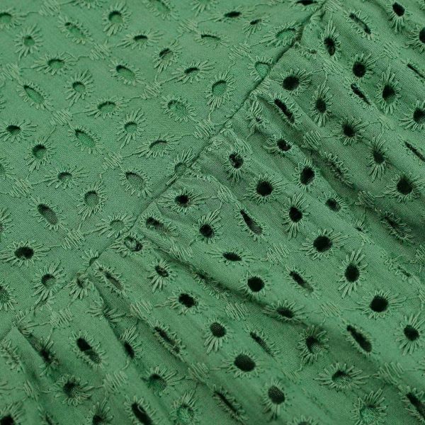 Поєднуйте цю сукню з високими підборами для елегантного вигляду або з сандалями для більш повсякденного та розслабленого стилю. Ігрові люверси та маленькі деталі з помпонами додають веселого та безтурботного дотику до сукні, роблячи її підходящою для різноманітних образів. Вона ідеальна для доповнення сонцезахисними окулярами та капелюхом для літньої атмосфери.