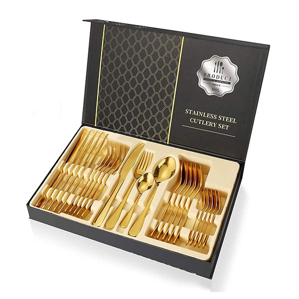 Виготовлений з матеріалів вищої якості, наш набір столових приборів розкішного класу гарантує стійкість та тривалу ефективність.