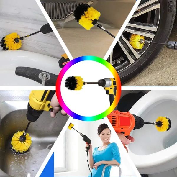 Цей професійний набір з 3 штук може використовуватися як всередині, так і зовні. Аксесуари для щітки ідеально підходять для чищення поверхонь кухонь, ванних кімнат, ванн, душів, раковин, плитки, штукатурки, скловолокна, інтер’єрів будинків, автомобілів, човнів та кемперів.