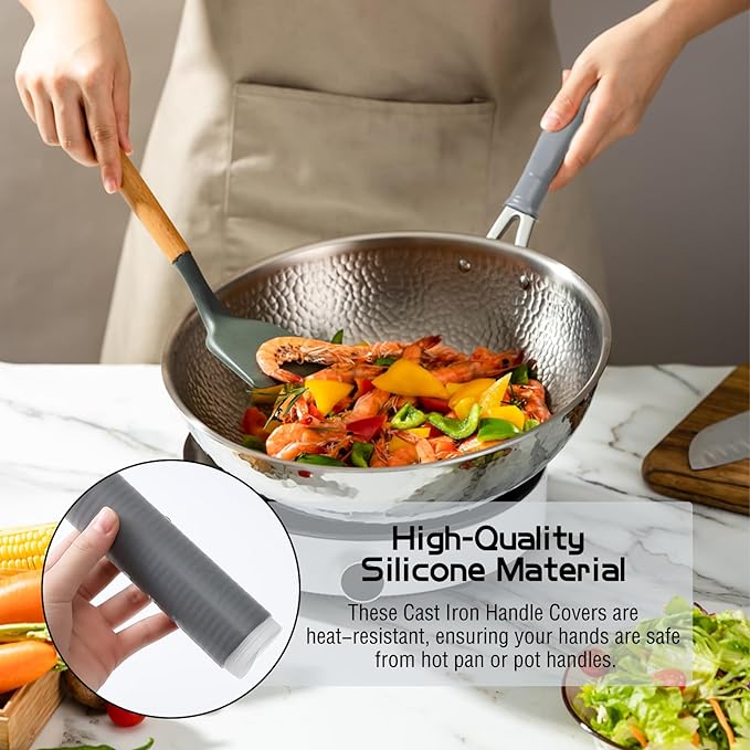 Забезпечте захист ручок вашого посуду з нашими вогнетривкими силіконовими накладками, які ідеально підходять до ручок різних розмірів.