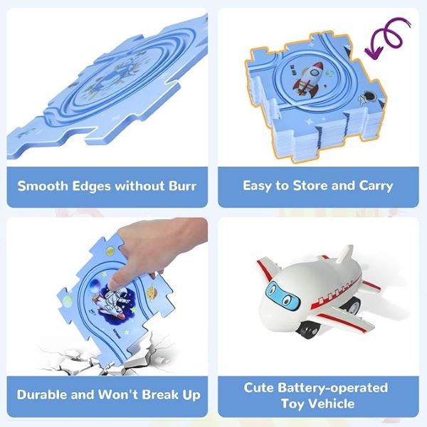 Набір включає різні доріжки, які дозволяють дітям легко створювати різні макети, покращуючи їхню креативність та здатність вирішувати проблеми.