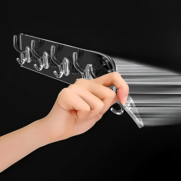 Від кухні до ванної кімнати та спальні, цей прозорий вішак відповідає вашим потребам. Завдяки унікальному дизайну, він ідеально підходить навіть для кутів, максимізуючи простір для зберігання.