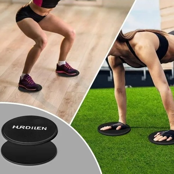 З легким набором з 2 двосторонніх слайдерів діаметром 17,5 см, ви можете брати свої тренування з собою.