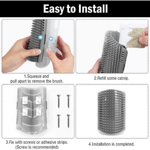 Котам може знадобитися деякий час, щоб звикнути до цих кутових щіток для котів; їх інтерес можна підвищити, додавши трохи котячої м’яти (не входить у комплект).