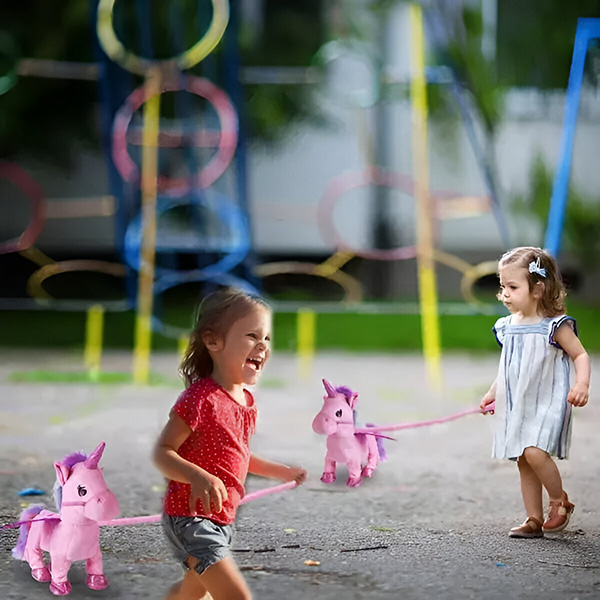 Замініть звичайні іграшки вашої дитини на цього веселого єдинорога, який ходить, співає та видає милі звуки одним дотиком! Діти будуть захоплені переходом від однієї пісні до іншої, тримаючи його на повідку та обіймаючись з його надзвичайно м’якою шерстю з бавовни. Насолоджуйтеся радісними обличчями ваших дітей, коли вони грають зі своїм новим найкращим другом.
